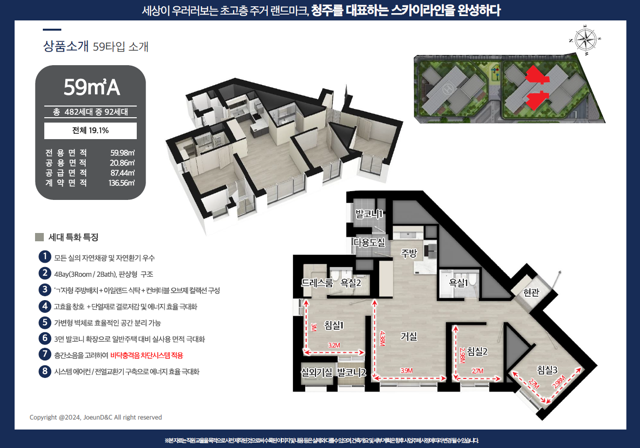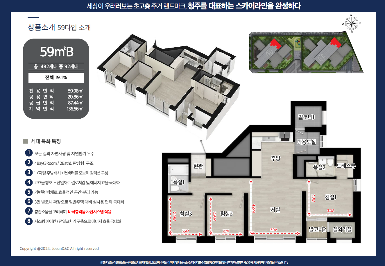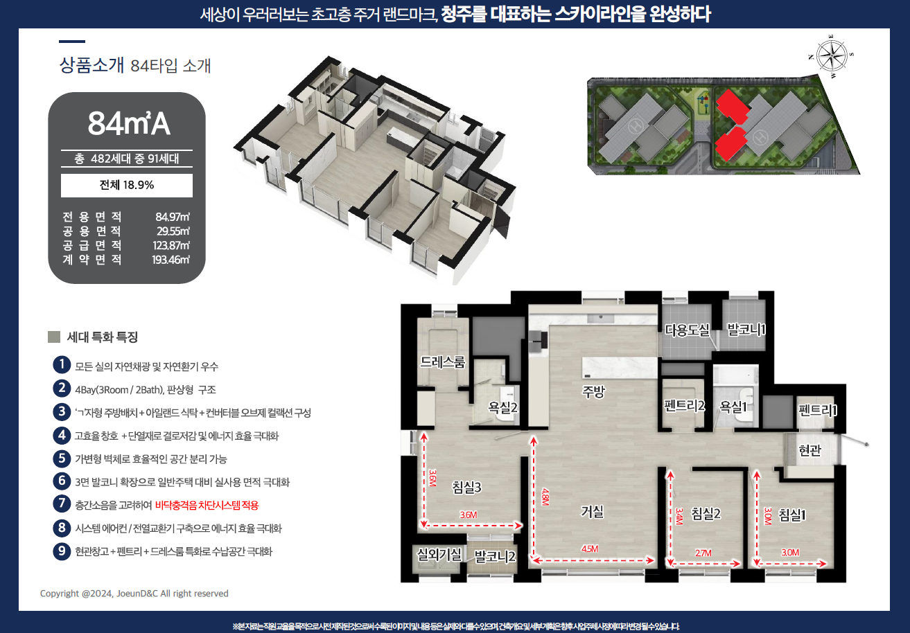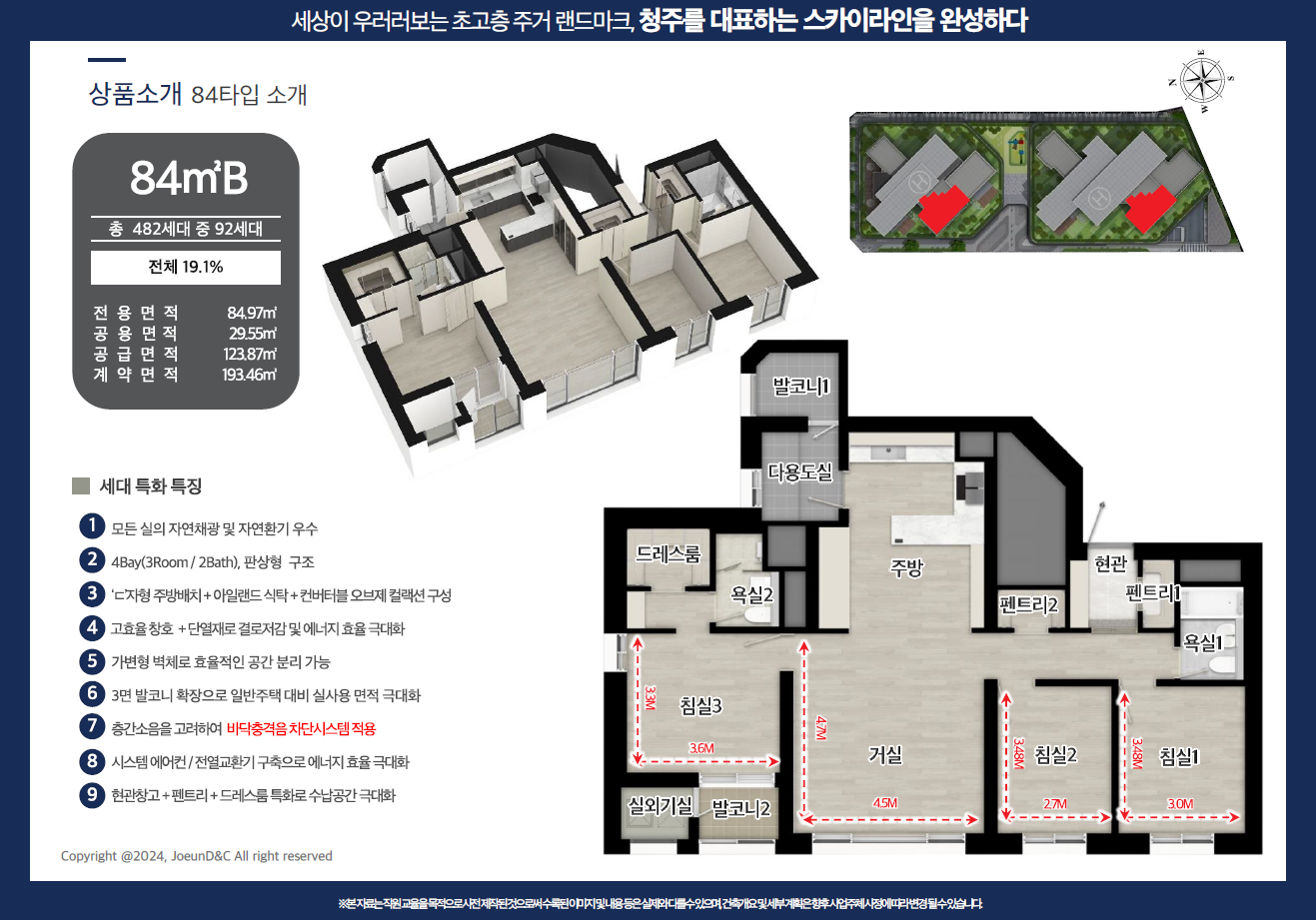 전용 37평형 방 3개 화장실 2개 구조입니다.