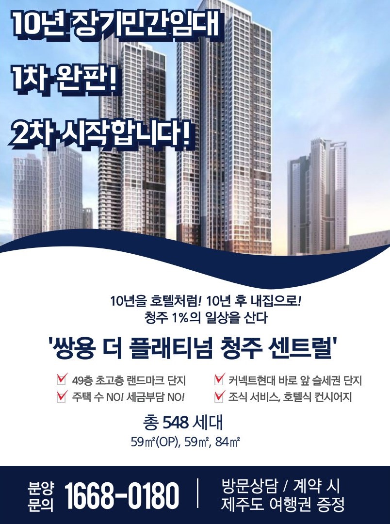 쌍용 더 플래티넘 청주 센트럴 민간임대주택 공급안내
